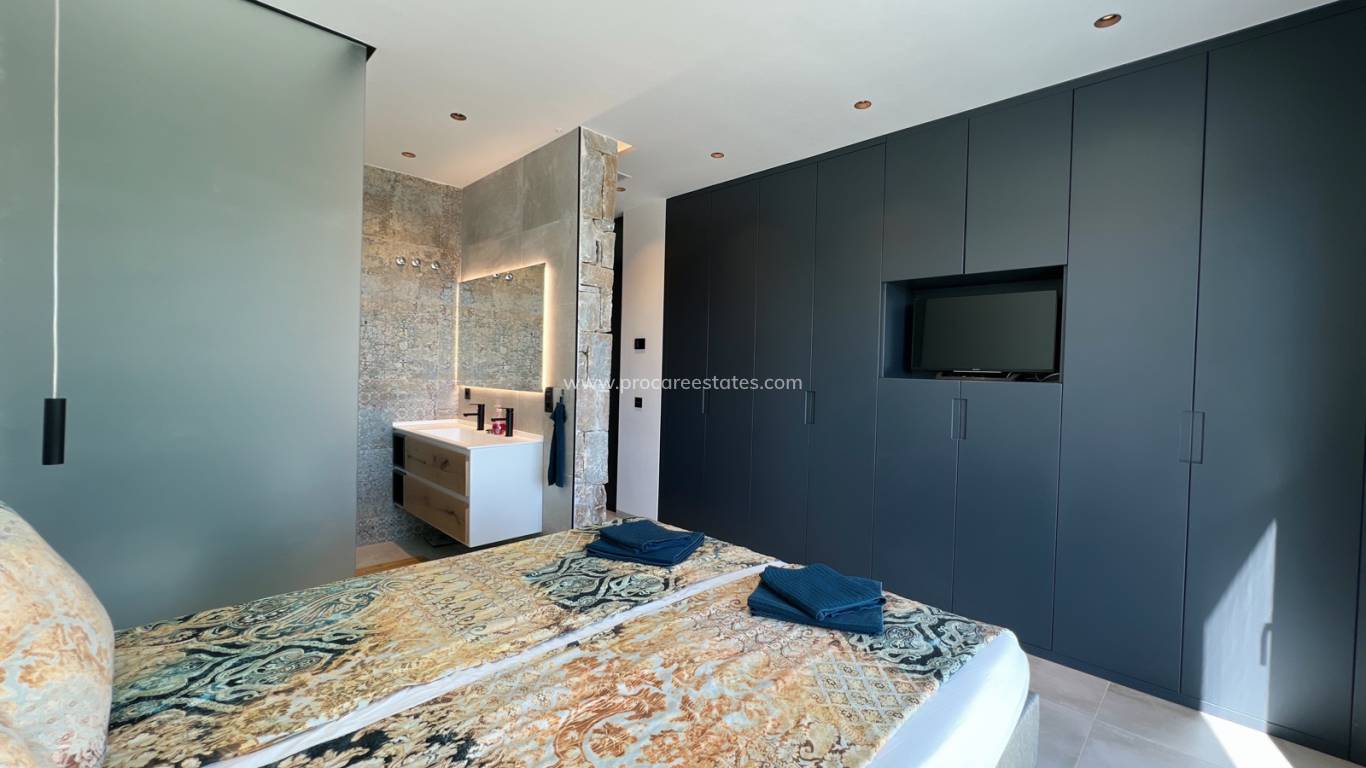 Mit großer Freude präsentieren wir Ihnen diese Luxusvilla in der begehrten Wohnanlage Residencial Oceanic direkt über dem Golfplatz La Marquesa in Rojales. Das Haus besteht aus 3 Etagen. Im Erdgeschoss gibt es ein großes Wohnzimmer mit offener Küche, eine Gästetoilette und 1 großes Schlafzimmer mit Einbauschrank und ein Badezimmer en suite. Vom Wohnzimmer aus gelangt man auf die große und schöne Terrasse mit dem privaten Infinity-Pool. Von hier aus genießt man einen fantastischen Blick über das Tal und das Mittelmeer. Wenn man die Treppe hinauf in den ersten Stock geht, gibt es 2 Schlafzimmer mit Einbauschränken und en-suite Badezimmern. Es gibt auch einen Balkon mit schöner Aussicht. Wenn Sie die Treppe ins Erdgeschoss nehmen, betreten Sie den Hauswirtschaftsraum, in dem sich derzeit Waschmaschine und Trockner befinden. Auf dieser Etage befinden sich 2 weitere Schlafzimmer mit Einbauschränken und en-suite Badezimmern. Im Erdgeschoss befindet sich ein weiteres großes Zimmer mit Sauna und Badezimmer. Hier finden Sie auch einen Innenhof und eine Garage.