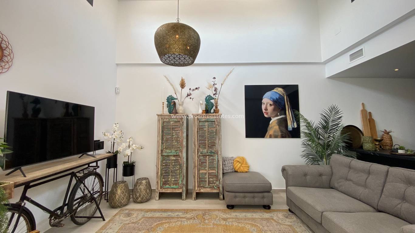 Presentamos con entusiasmo esta preciosa villa con piscina privada en Daya Nueva. La villa es de una sola planta, a pocos minutos andando del centro del pueblo. La propiedad consta de 3 dormitorios, 2 baños y una piscina privada (agua salada). Salón comedor con doble altura bajo techo, cocina abierta con bodega, campana extractora integrada y una preciosa placa de inducción. Gracias a las numerosas ventanas grandes, hay mucha luz. El dormitorio principal tiene baño en suite y vestidor. Hay otros dos dormitorios dobles, uno con armarios empotrados y ambos con puertas correderas que dan al jardín. Hay otro baño que también se utiliza como aseo/baño de invitados. A través del impresionante jardín, donde se puede disfrutar del sol y la tranquilidad durante todo el día, se puede acceder a la bodega. El sótano grande todavía está abierto para opciones, actualmente se usa para almacenamiento. La casa está orientada al sur/oeste y se vende sin muebles.
