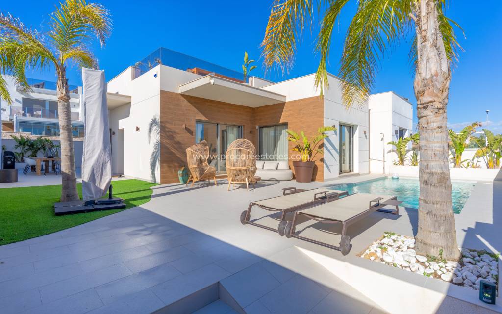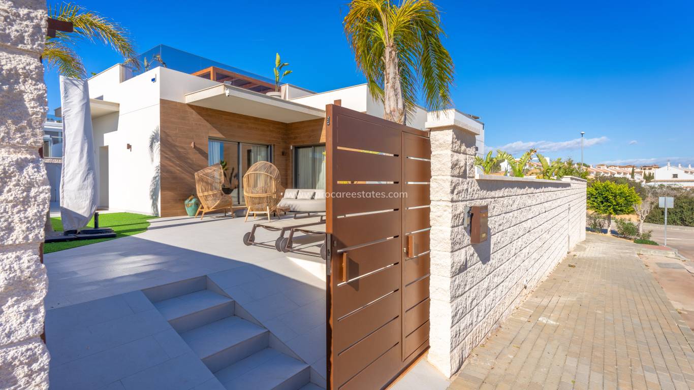 Exclusiva Villa con Piscina de Agua Salada y Ubicación Ideal en San Miguel de Salinas Descubre esta impresionante villa en San Miguel de Salinas, donde el lujo, la comodidad y una ubicación privilegiada se combinan a la perfección. Con espectaculares vistas a las montañas y a la laguna salada de Torrevieja, una piscina privada de agua salada y acabados de alta calidad, esta propiedad ofrece todo lo necesario para disfrutar plenamente del estilo de vida mediterráneo. Ubicación Perfecta – Playa y Golf a Solo 15 Minutos Esta villa goza de una ubicación inmejorable, a solo 15 minutos en coche de algunas de las playas más hermosas de la Costa Blanca y de varios prestigiosos campos de golf. Además, todos los servicios esenciales, como supermercados, tiendas y restaurantes, están a poca distancia. Piscina Privada de Agua Salada Relájate en tu propia piscina de agua salada de 7 x 3 metros, con preinstalación para calefacción. Disfruta de agua cristalina y ecológica en tu jardín privado, ideal para un refrescante baño en cualquier momento del día. Orientación Sureste – Aprovecha al Máximo el Sol Gracias a su orientación sureste, la villa permite disfrutar del sol de la mañana y de espacios luminosos durante todo el día, tanto en el interior como en el exterior. La amplia terraza en la azotea es el lugar perfecto para relajarse o recibir invitados. Lujo y Comodidad • Cocina moderna: Equipada con placa de inducción con extractor integrado, horno con función de vapor, lavavajillas, grifo de agua hirviendo, frigorífico y congelador. • Terraza en la azotea: Con una lujosa cocina exterior y bar, con conexión de agua fría y caliente. • Amplios dormitorios: Tres en la planta baja y uno con baño en suite en la planta inferior, con posibilidad de añadir 2 o 3 dormitorios adicionales. • Suelo radiante en el salón, la cocina y los baños para un máximo confort. • Aire acondicionado por conductos en la planta baja, dos unidades independientes en la planta inferior y preinstalación en la habitación de invitados. • Toda la vivienda está totalmente equipada con mosquiteras, tanto arriba como abajo. Extras de Lujo y Funcionalidad • Gimnasio profesional: Totalmente equipado con maquinaria de alta gama. • Lavadero práctico: Con encimera de trabajo y amplio espacio de almacenamiento. Sostenibilidad y Eficiencia Energética La vivienda cuenta con 10 paneles solares, lo que permite un importante ahorro energético y un estilo de vida más sostenible. Tu Hogar Mediterráneo de Ensueño Con una ubicación perfecta—cerca de playas, campos de golf y todos los servicios—y acabados de primer nivel, esta villa es ideal como residencia permanente, casa de vacaciones o inversión. ¡Contáctanos hoy mismo para más información o para programar una visita y hacer realidad tu sueño!