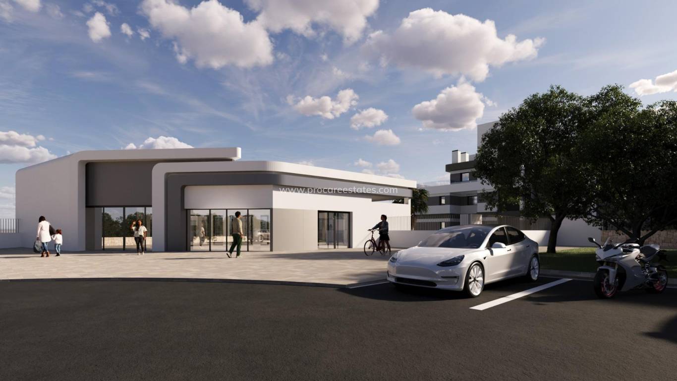 COMPLEJO RESIDENCIAL DE OBRA NUEVA CERCA DE MUTXAMEL Ven a vivir en un complejo en una zona con una alta calidad de vida, situado en el campo de golf de Bonalba con impresionantes vistas al mar cerca de Mutxamel, a poca distancia del aeropuerto de Alicante, la ciudad de Alicante y las playas.... El complejo residencial dispone de apartamentos de 2 y 3 dormitorios con amplias terrazas, y villas de 2, 3 y 4 dormitorios. Un hogar de ensueño donde creará los mejores recuerdos de su vida. Viviendas exclusivas con todos los servicios necesarios al alcance de la mano. Relájese después de un largo día de trabajo en la piscina del complejo. Cada rincón ha sido desarrollado con atención al detalle. Querrá invitar a amigos y familiares a disfrutar de su espaciosa casa de dos, tres o cuatro dormitorios cada fin de semana. Disfrute de la vida de sus sueños en el complejo: carreras matutinas; un relajante baño en la piscina del complejo; una encantadora comida con amigos y familiares en el Club Social; y una tarde de diversión con los niños en las zonas infantiles. Y todo ello en un entorno exclusivo a pocos pasos de una relajante partida de golf. Ya sea solo, con su mascota o con sus seres queridos, cada rincón que visite está diseñado para proporcionarle confort visual y mantenerle a usted y a los suyos a salvo. Durante sus paseos por las zonas comunes del complejo, podrá encontrar: Una gran fuente acabada en azulejos azules. Una zona junto a la piscina con césped natural. Mobiliario repartido por toda la parcela en el que descansar y contemplar las vistas del complejo. Pequeñas zonas de césped artificial y cerámica en tono madera lustrosa. El complejo está totalmente vallado con video portero para su seguridad y la de los que más le importan. Edificios y arquitectura de gran elegancia y estilo contemporáneo que le cautivarán. Por si disfrutar de un espacio con un estilo impecable no fuera suficiente, tu nuevo hogar junto al campo de golf de Bonalba contará con amplias terrazas equipadas con barandillas de cristal que te permitirán contemplar las vistas al mar con un detalle impecable. Imagínese despertarse cada mañana para enfrentarse al extraordinario amanecer alicantino. Desayune con la mejor luz de España: la luz del Mediterráneo.