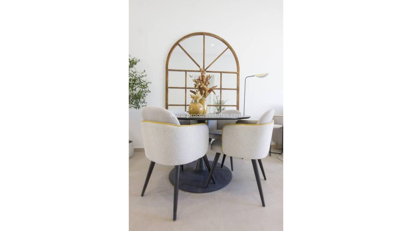 Complejo Residencial de Nueva Construcción en San Fulgencio Apartamentos contemporáneos con características excepcionales Descubra esta nueva promoción residencial en San Fulgencio, que ofrece apartamentos de 2 y 3 dormitorios diseñados para ofrecer confort, estilo y comodidad. El complejo cuenta con: Plantas bajas con jardín privado Áticos con solarium privado, pérgolas, tomas de corriente y tomas de agua. Cada propiedad incluye una plaza de aparcamiento privado, y el desarrollo cuenta con una piscina comunitaria de estilo mediterráneo con una lámina de agua de 85 m², rodeado de hermosos jardines. Acabados de alta calidad y diseño moderno Estas viviendas están construidas con materiales de primera calidad y elementos modernos para garantizar la eficiencia energética y un alto nivel de vida: Persianas eléctricas en dormitorios Carpintería exterior de doble acristalamiento con rotura de puente térmico Cuartos de baño totalmente equipados con tocadores, espejos y mamparas de ducha Iluminación LED en toda la vivienda Preinstalación de aire acondicionado por conductos para climatización Ubicación privilegiada cerca de playas, golf y servicios San Fulgencio es una encantadora ciudad española con una selección de restaurantes, tiendas y servicios esenciales a poca distancia. Su estratégica ubicación ofrece un rápido acceso a algunas de las mejores atracciones de la Costa Blanca: Aeropuerto Internacional de Alicante-Elche - 30 km (30 min) Playa de La Marina - 7 km (10 min) Guardamar del Segura - 10 km (12 min) Campo de Golf La Marquesa (Ciudad Quesada) - 6 km (8 min) Torrevieja centro ciudad - 18 km (20 min) Centros comerciales, restaurantes y opciones de ocio - a poca distancia en coche El hogar ideal para vivir en la costa Esta nueva promoción en San Fulgencio es perfecta para aquellos que buscan una casa de vacaciones moderna, una propiedad de inversión o una residencia permanente en la Costa Blanca. Con su excelente ubicación cerca de la playa, campos de golf y servicios esenciales, ofrece un estilo de vida tranquilo pero bien comunicado. No pierda la oportunidad de ser propietario de una vivienda a estrenar en San Fulgencio. ¡Póngase en contacto con nosotros hoy mismo para obtener más detalles o para programar una visita!