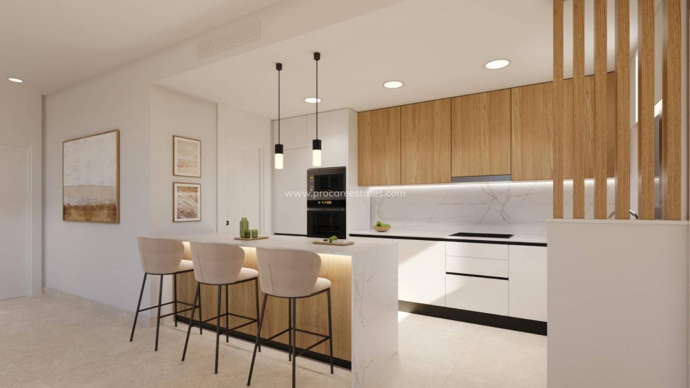 Villas de Obra Nueva en Hacienda del Álamo Golf Resort, Murcia Viviendas Modernas en un Entorno Natural y Exclusivo Descubre estas fantásticas villas de obra nueva en el prestigioso Hacienda del Álamo Golf Resort, una urbanización cerrada en la región de Murcia que combina tranquilidad, seguridad y una completa oferta de servicios. Rodeado de naturaleza y con un clima privilegiado, este complejo es ideal para quienes buscan un estilo de vida relajado sin renunciar al confort. Villas de 2 o 3 Dormitorios en una planta con solarium privado El residencial está compuesto por 17 villas en parcelas a partir de 300 m2. Podrá elegir entre viviendas con 2 o 3 dormitorios y 2 baños completos en una sola planta, además de una zona de terraza con piscina privada de 6x2.4 y un solarium privado en la azotea. Acabados de Alta Calidad y Confort Garantizado Las viviendas están diseñadas con materiales de alta calidad y pensadas para ofrecer eficiencia energética y bienestar: Carpintería exterior con rotura de puente térmico Agua caliente mediante sistema de aerotermia Preinstalación de aire acondicionado por conductos Piscina privada Instalación independiente de agua de riego con depósito acumulador y grupo de presión individual. Puerta de acceso de vehículos motorizada. Persianas motorizadas en dormitorios Puerta de entrada acorazada Un Resort con Servicios Completos y Campo de Golf Hacienda del Álamo es uno de los complejos más completos de la Costa Cálida. Cuenta con: Campo de golf profesional de 18 hoyos Hotel con spa Supermercado Restaurantes y bares Pistas deportivas y zonas verdes Seguridad 24 horas La urbanización recrea el ambiente de un tradicional pueblo mediterráneo, con calles tranquilas y un diseño cuidado. Ubicación Estratégica Cerca de Todo Aeropuerto Internacional de Murcia (Corvera): 20 km Campos de golf adicionales: menos de 10 km Cartagena: 35 km Playas del Mar Menor: 30 km Centro comercial Espacio Mediterráneo: 28 km Puerto de Mazarrón: 40 km Vive con Estilo en la Costa Cálida Estas villas representan una excelente oportunidad para vivir o invertir en una de las zonas con mayor proyección de Murcia. Contáctanos ahora y descubre tu próximo hogar en Hacienda del Álamo Golf Resort.