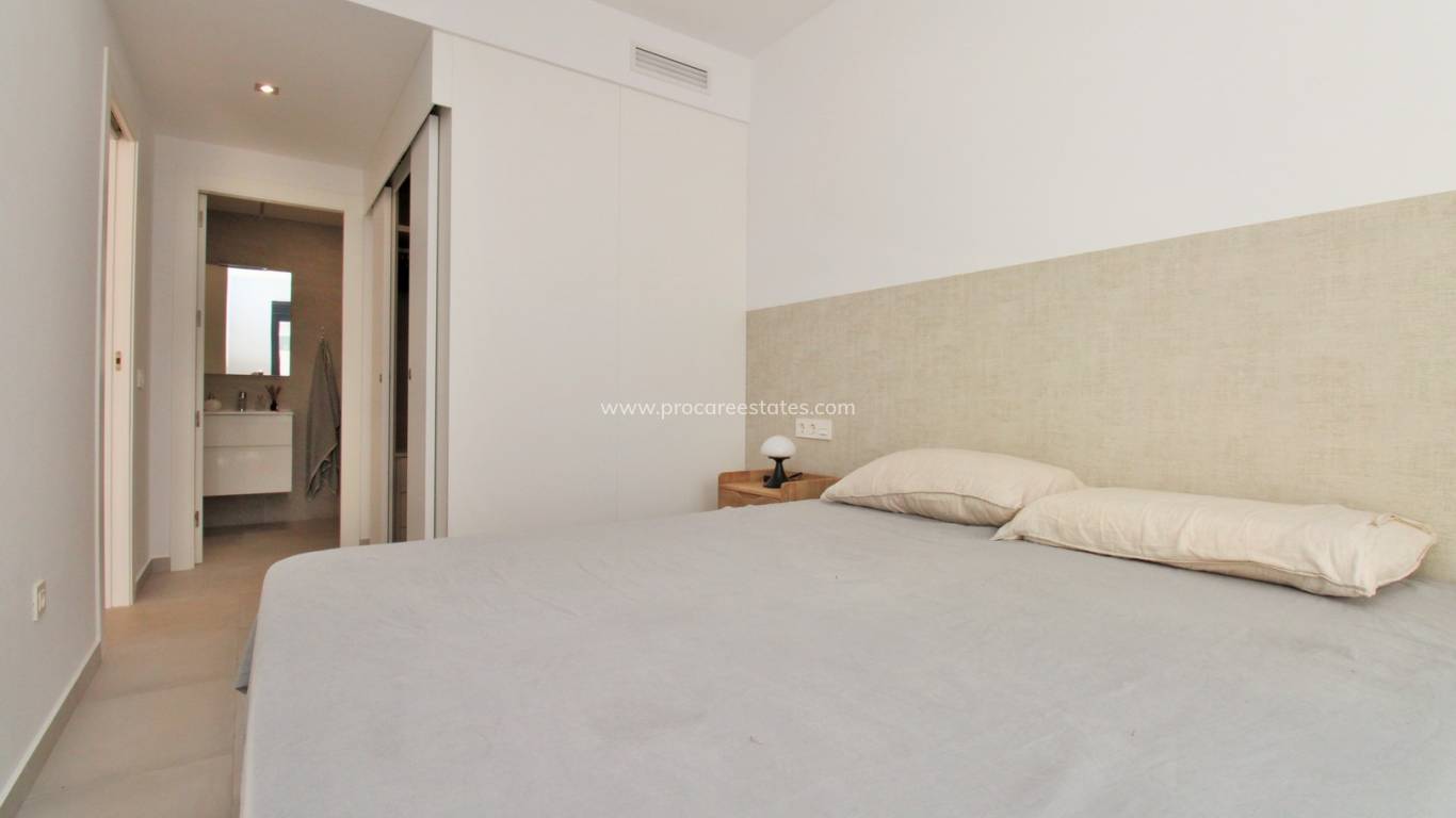 Esta moderna casa adosada de 2 dormitorios, terminada en 2022, se encuentra en una zona residencial tranquila de Pilar de la Horadada, a un corto paseo de la plaza del pueblo y de todos los servicios. Diseñada para ofrecer comodidad y bajo mantenimiento, dispone de amplias zonas exteriores y un acabado contemporáneo de alta calidad. La vivienda se accede a través de puertas dobles que dan a la terraza delantera, donde también hay aparcamiento dentro de la parcela. Desde aquí, una escalera exterior conduce al impresionante solárium privado de 73m² con ducha exterior, ideal para relajarse, tomar el sol o recibir invitados. Debajo de la escalera hay una práctica zona de lavadero/trastero cerrada. El interior ofrece un ambiente luminoso y de concepto abierto. La cocina moderna cuenta con muebles elegantes, electrodomésticos integrados, placa de inducción y horno y microondas empotrados. Junto a la cocina se encuentra un baño con ducha para invitados y un dormitorio doble con armarios empotrados. Una zona de comedor conduce a la espaciosa suite principal, que dispone de su propio baño privado con ducha, un vestidor con cierre y acceso directo a la terraza y a la piscina mediante puertas correderas. El salón también conecta con la terraza trasera, creando una transición fluida entre interior y exterior. La zona exterior cuenta con espacios para comer y descansar junto a la fantástica piscina climatizada de 3m x 5m con banco de spa, ideal para disfrutar todo el año. Ubicada en una zona tranquila y bien comunicada de Pilar de la Horadada, la propiedad está a aproximadamente 3,5 km de la playa, accesible por un paseo peatonal perfecto para caminar o ir en bici. Construida con altos estándares, la casa ofrece certificado energético B, suelo radiante en ambos baños, aire acondicionado por conductos y persianas eléctricas en todas las puertas correderas. Se vende sin amueblar, ideal como vivienda permanente, casa de vacaciones o inversión de alquiler de alta calidad. Visitas con cita previa.
