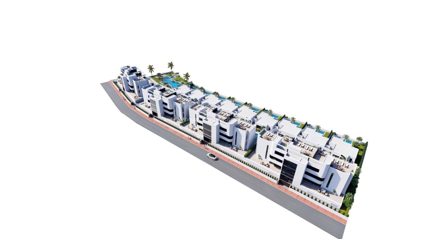 Apartamentos y villas de nueva construcción frente al campo de golf La Serena Golf en Los Alcázares Exclusiva promoción residencial en primera línea del campo de golf La Serena Golf Descubra esta excepcional promoción residencial de nueva construcción situada en primera línea del campo de golf La Serena Golf en Los Alcázares, una de las localidades costeras más codiciadas de la Costa Cálida. Esta exclusiva comunidad ofrece un estilo de vida de primera clase rodeado de naturaleza, vistas despejadas y acceso directo a un prestigioso campo de golf de 18 hoyos conocido por su terreno llano, sus pintorescos lagos y sus retos técnicos. Con una ubicación ideal a solo 1,7 km de las playas del Mar Menor y del centro de la ciudad, los residentes pueden disfrutar tanto de la tranquilidad como de un fácil acceso a restaurantes, tiendas y todos los servicios esenciales. Los Alcázares es conocida por su ambiente relajado, sus largos paseos marítimos y sus cálidas aguas poco profundas, lo que la convierte en un lugar perfecto para vivir todo el año o para estancias vacacionales. Apartamentos modernos con terrazas y soláriums privados La promoción incluye 36 apartamentos contemporáneos distribuidos en cuatro bloques. Los compradores pueden elegir entre distribuciones de dos o tres dormitorios con dos baños, incluido uno en suite. Los apartamentos de planta baja cuentan con amplias terrazas con la opción de añadir una piscina privada. Las viviendas de las plantas intermedias ofrecen generosas terrazas exteriores, mientras que los áticos incluyen soláriums privados ideales para tomar el sol y cenar al aire libre. Todos los apartamentos incluyen aparcamiento subterráneo y un trastero con acceso mediante ascensor. La comunidad también ofrece unos jardines mediterráneos con un bonito diseño paisajístico y una gran piscina comunitaria para el disfrute de los residentes. Elegantes villas de una sola planta con piscina privada Además de los apartamentos, la promoción ofrece nueve exclusivas villas de una sola planta. Estas viviendas cuentan con tres dormitorios, dos baños y un aseo adicional para invitados, todo ello diseñado para proporcionar una vida interior y exterior sin fisuras. Cada villa incluye una piscina privada, jardín, trastero y aparcamiento privado. Un amplio sótano diáfano proporciona un espacio adicional flexible que puede adaptarse a las necesidades individuales, como un gimnasio, una zona de ocio o un trastero adicional. Acabados de alta calidad y diseño energéticamente eficiente Todas las propiedades están construidas con materiales de alta calidad y especificaciones modernas. Entre las características se incluyen carpintería exterior de aluminio con rotura de puente térmico, baños totalmente equipados con muebles de tocador y mamparas de ducha de cristal, así como preinstalación para aire acondicionado por conductos y cocinas amuebladas en los apartamentos. Las villas cuentan con sistemas de aire acondicionado totalmente instalados y cocinas equipadas con electrodomésticos. Los bloques de apartamentos disponen de ascensores, lo que garantiza la comodidad y la accesibilidad. Ubicación privilegiada cerca del golf, las playas y los servicios Esta promoción ofrece una excelente conectividad con los principales puntos de interés. El Aeropuerto Internacional de Murcia está a 35 km y el de Alicante a 95 km. El puerto deportivo de Los Alcázares está a solo 2 km, el centro comercial Dos Mares a 15 km y Roda Golf a solo 4 km de la promoción. El centro de Cartagena se encuentra a 25 km. Una inversión ideal y una oportunidad para disfrutar del estilo de vida mediterráneo Esta promoción frente al campo de golf ofrece una oportunidad única para disfrutar de una vida moderna en un entorno privilegiado, cerca tanto del mar como del golf. Póngase en contacto con nosotros hoy mismo para recibir más información o concertar una visita y encontrar su hogar perfecto en Los Alcázares.