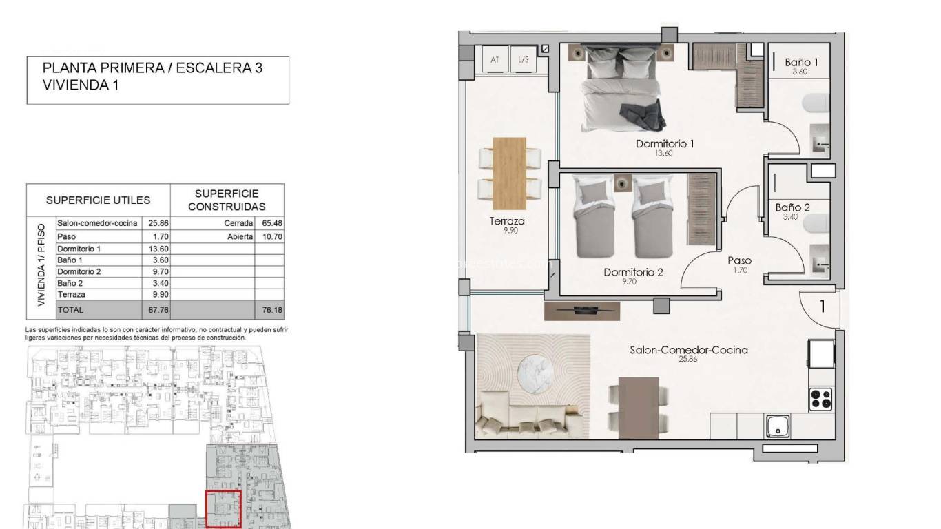 NOUVEAU COMPLEXE RÉSIDENTIEL A SANTA POLA Nouveau complexe résidentiel moderne fermé comprenant des appartements et des penthouses de 1, 2 et 3 chambres à coucher avec 2 salles de bains complètes. Le complexe se compose de 4 escaliers d'appartements avec de vastes espaces communs paysagers, y compris une piscine, un espace de détente et un gymnase. Toutes les propriétés ont été soigneusement conçues pour vous offrir une expérience de vie exceptionnelle, avec des finitions de haute qualité et un style moderne. Profitez des vastes terrasses, où vous pourrez vous détendre, manger en plein air et admirer les couchers de soleil les plus spectaculaires. L'emplacement est tout simplement imbattable : à côté du centre de Santa Pola et de la palmeraie, et à seulement quelques minutes de la promenade, vous serez à proximité d'un large éventail de restaurants, de bars et de supermarchés. Excellente connexion avec la route nationale 332, qui relie tout le sud de la Costa Blanca, et avec l'aéroport en seulement 15 minutes.