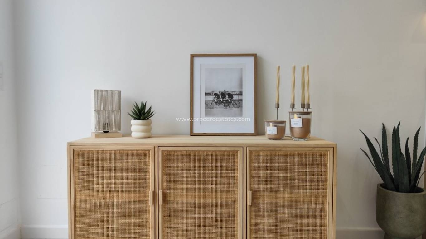 Maison mitoyenne. Maison mitoyenne entièrement rénovée dans un quartier calme Cette maison mitoyenne, prête à habiter, a été entièrement rénovée récemment et offre un espace de vie confortable et moderne dans un quartier calme. Elle comprend deux chambres et une salle de bains et est vendue en l'état, idéale pour ceux qui souhaitent s'installer ou investir en toute sérénité. Agencement et confort En entrant dans la maison, on découvre un espace de vie ouvert et lumineux, avec une cuisine entièrement équipée, parfaitement intégrée au séjour. Les finitions modernes et les matériaux neutres créent une atmosphère agréable et intemporelle. Les chambres sont agencées de façon pratique. L'une d'elles bénéficie d'un accès direct à une buanderie séparée, équipée d'un lave-linge et d'un chauffe-eau — un atout supplémentaire en termes de confort et de fonctionnalité. Un escalier en caracol permet d'accéder à l'étage supérieur, ce qui apporte une touche ludique et pleine de caractère. Espace extérieur À l'avant de la maison se trouve une agréable terrasse, idéale pour profiter du plein air espagnol. Emplacement Cette propriété est située au calme dans le quartier de La Siesta à Torrevieja, un secteur résidentiel prisé et facilement accessible. À proximité, vous trouverez toutes les commodités nécessaires : supermarchés, restaurants et transports en commun. Les plages de Torrevieja, les lacs salés et les sentiers de randonnée sont à deux pas, tout comme le centre-ville et diverses activités sportives et de loisirs. La Siesta est connue pour son climat agréable, sa bonne accessibilité et son atmosphère internationale, ce qui fait de cette maison un lieu de vie idéal, une résidence secondaire ou un investissement. Pour plus d'informations ou pour organiser une visite, veuillez contacter Sunrisa — nous serons ravis de vous aider à trouver votre havre de paix sous le soleil espagnol.