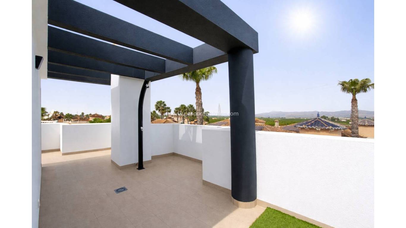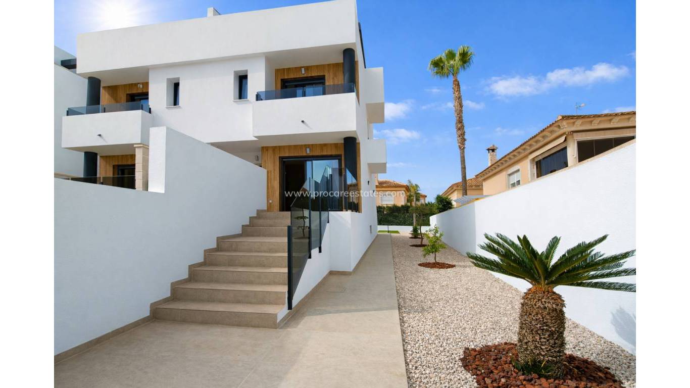 Alicante Maravillas présente un programme exclusif de 10 maisons mitoyennes neuves à Benferri Prix directs promoteur · Piscine privée incluse dans le prix Découvrez une opportunité unique de vivre dans une maison moderne et lumineuse, conçue pour profiter pleinement du style de vie méditerranéen. Ce programme exclusif de 10 maisons combine espaces généreux, design contemporain et finitions de haute qualité dans un emplacement stratégique. Chaque logement dispose de 3 chambres et d’une spectaculaire piscine privée de 5x3 mètres incluse dans le prix, située à l’arrière avec une zone prête à être aménagée en jardin, idéale pour créer votre propre espace extérieur personnalisé. À l’entrée, un grand porche avec garde-corps en verre mène à un salon lumineux avec cuisine ouverte, conçu pour optimiser l’espace et le confort. La cuisine est livrée entièrement équipée, avec meubles et électroménagers inclus. Le rez-de-chaussée comprend également : salle de bain complète pour invités, Buanderie indépendante et Système d’aérothermie installé, Pré-installation de climatisation gainable, Vidéophone. À l’étage, vous trouverez trois chambres spacieuses avec placards intégrés. La chambre principale dispose d’une salle de bain en suite et d’un accès à une terrasse privée, offrant un espace intime et exclusif. Une deuxième salle de bain complète dessert les autres chambres. Le deuxième étage offre un magnifique solarium privé de 39 m², idéal pour créer un espace détente, une cuisine extérieure ou un coin relaxation pour profiter du soleil toute l’année. L’un des grands atouts est le spectaculaire sous-sol de 90 m² avec garage privé et porte motorisée, un espace polyvalent pouvant être aménagé en salle de loisirs, salle de sport, bureau ou espace de rangement. Situé à quelques minutes de Orihuela avec un accès rapide à l’Autovía A-7, ce programme permet de rejoindre facilement les plages de la Costa Blanca, l’aéroport d’Alicante et les principales zones commerciales et de loisirs. Un programme conçu pour ceux qui recherchent qualité, intimité, confort et excellente connexion, avec prix directs promoteur. Exclusivité, design et confort dans un emplacement privilégié. VILLA PLOT (m²) BEDROOMS BATHROOMS TOILET BASEMENT (m²) USABLE AREA (m²) Solarium (m²) PRICE (€) (Pool included) LANDSCAPED GARDEN AVAILABILITY 29 480,08 3 2 1 90,34 192,06 39,64 417.000 € 15.000 optional (+ pool extension) FREE 30 211,13 3 2 1 91,24 192,96 39,64 326.000 € 6.000€ optional FREE 31 235,38 3 2 1 91,24 192,96 39,64 342.000 € 6.000€ optional RESERVED 32 250,78 3 2 1 91,24 192,96 39,64 357.000 € 6.000€ optional FREE 33 243,18 3 2 1 91,24 192,96 39,64 351.000 € 6.000€ optional FREE 34 206,98 3 2 1 91,24 192,96 39,64 323.000 € 6.000€ optional RESERVED 35 199,33 3 2 1 91,24 192,96 39,64 319.000 € 6.000€ optional FREE 36 192,03 3 2 1 91,24 192,96 39,64 318.000 € 6.000€ optional FREE 37 220,73 3 2 1 91,24 192,96 39,64 336.000 € 6.000€ optional FREE 38 273,48 3 2 1 64,54 192,96 39,64 369.000 € SHOWHOUSE FREE