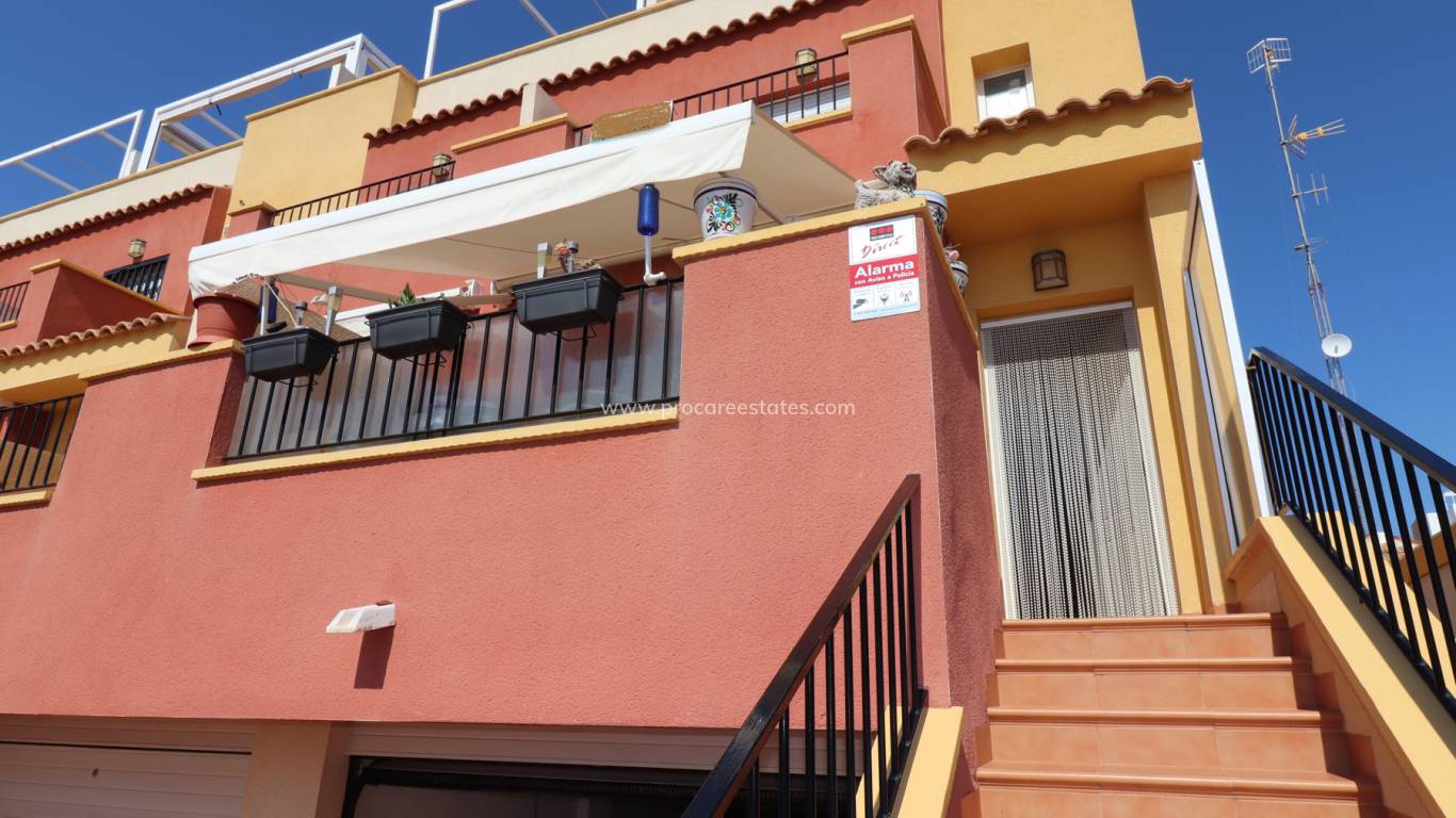 Het huis is gelegen in een van de nieuwste delen van de Orihuela Costa en dankzij het grotere hoekperceel is er ook ruimte om een privézwembad toe te voegen. De huidige eigenaren hebben een thuisbar gecreëerd die een ideale plek is om te entertainen. Onder de woning bevindt zich de grote privé dubbele garage. De hoofdingang is vanaf het terras op het zuidoosten, u komt direct in een lichte en mooie woonkamer, tv-ruimte en eetkamer. Vanuit de keuken is toegang tot de achtertuin. Vanuit de woonkamer gaat u met een trap naar de eerste verdieping. Hier heb je 2 grote tweepersoons slaapkamers met inbouwkasten, waarvan één met een balkon met prachtig uitzicht en er is een grote moderne badkamer. Vanuit deze verdieping gaat u naar de tweede verdieping, hier is een groot dakterras met uitzicht op de omgeving en de zee in de verte. In de onderbouw bevindt zich een garage van 67 m2, voorzien van elektra en water, hier heeft u plaats voor een of meerdere auto's en veel bergruimte. Dit is een perfecte woning voor vaste bewoners maar ook als vakantiewoning. Als u behoefte heeft aan verkoeling, bent u slechts een korte wandeling naar de groot en goed onderhouden gemeenschappelijk zwembad.