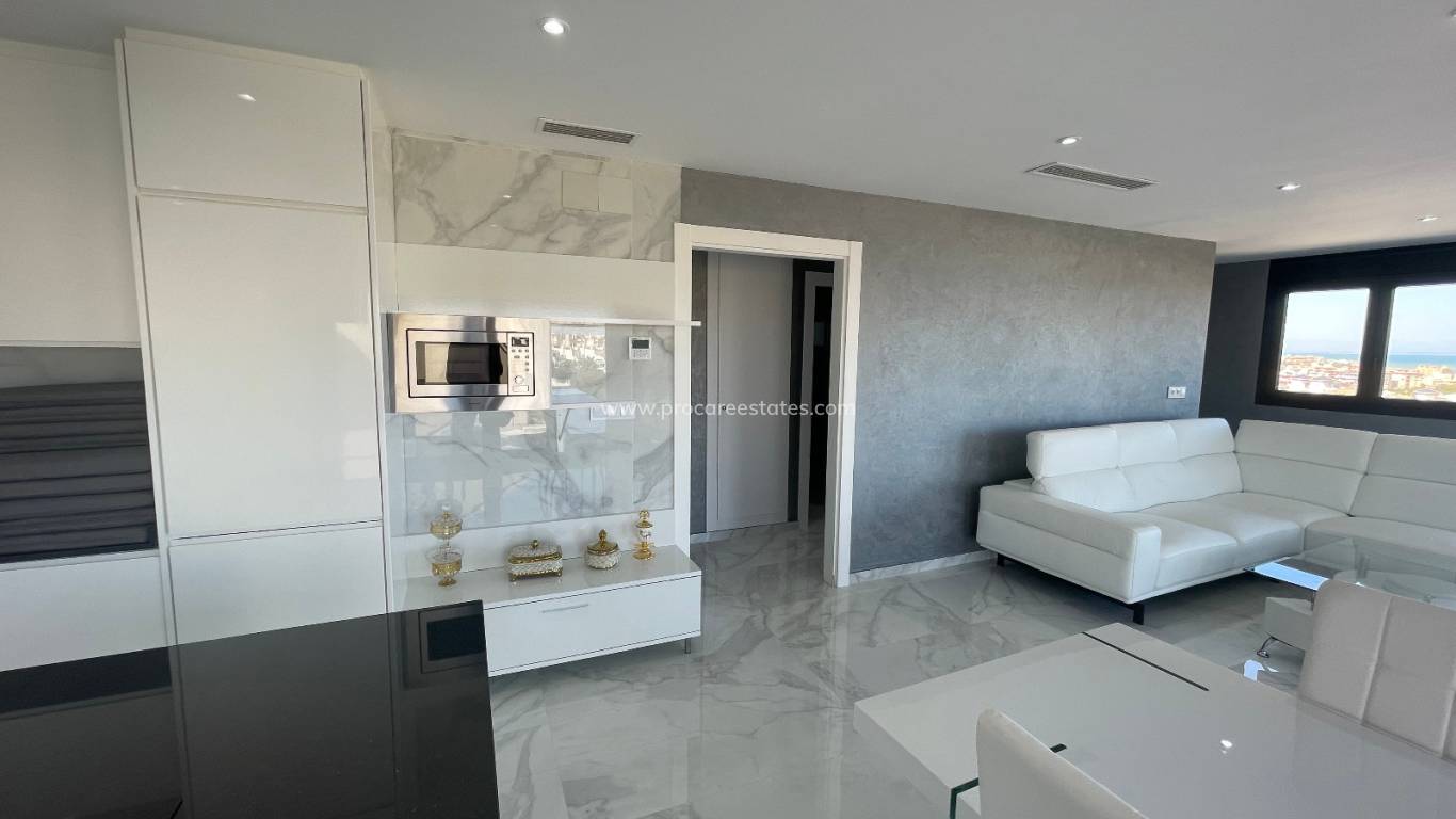 A semi-detached house with a private pool, all nearly new, recently built, stunning views, near La Mata beach in Torrevieja, independent access to the first-floor house. The house has two separate units. 2 fully equipped kitchens, sold furnished, has a spacious garage.