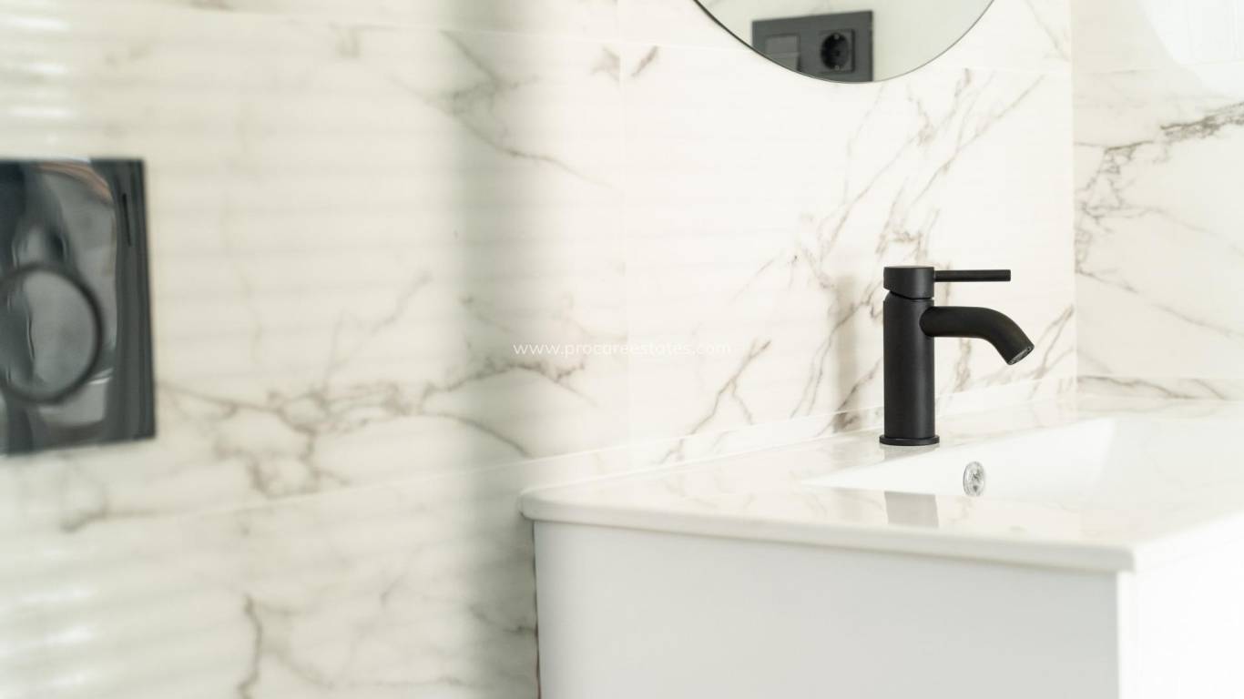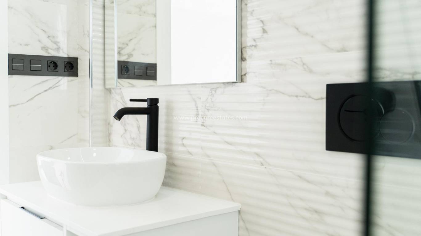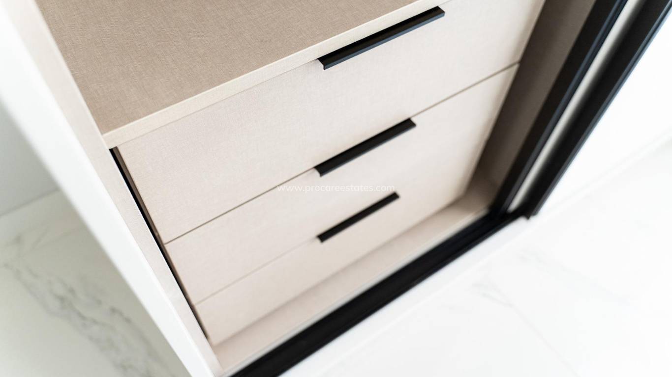 NEW BUILD RESIDENTIAL COMPLEX IN PUNTA PRIMA New Built residential complex of bungalow apartments and 7 detached villas in Punta Prima. New Build villas are distributed over two floors, plus the sunny roof terrace. On the ground floor there is a bright and spacious living room with its open plan kitchen, 1 bedroom with fitted wardrobe and 1 bathroom. On the first floor you can find other 3 bedrooms with fitted wardrobes and 2 bathrooms, from wich one en-suite with the main bedroom. From the main bedroom you can access a terrace. Stairs up you reach private solarium. The urbanization will offer nice green areas with a playground for children, a gym and two communal pools. Complex located a few meters from the centre of Punta Prima where you will find all the amenities you may need. In the surroundings you will find a wide range of nice restaurants, cafes, supermarkets, pharmacies and all the amenities you may need. Punta Prima, located just 5 km from Torrevieja, is characterized by good communication and health infrastructures, the proximity to Alicante airport, and the number of services open throughout the year. Just 10 km away we can find the golf courses of Villamartín, Campoamor, Las Ramblas, Las Colinas and Lo Romero, as well as the commercial centres of La Zenia and Habaneras.