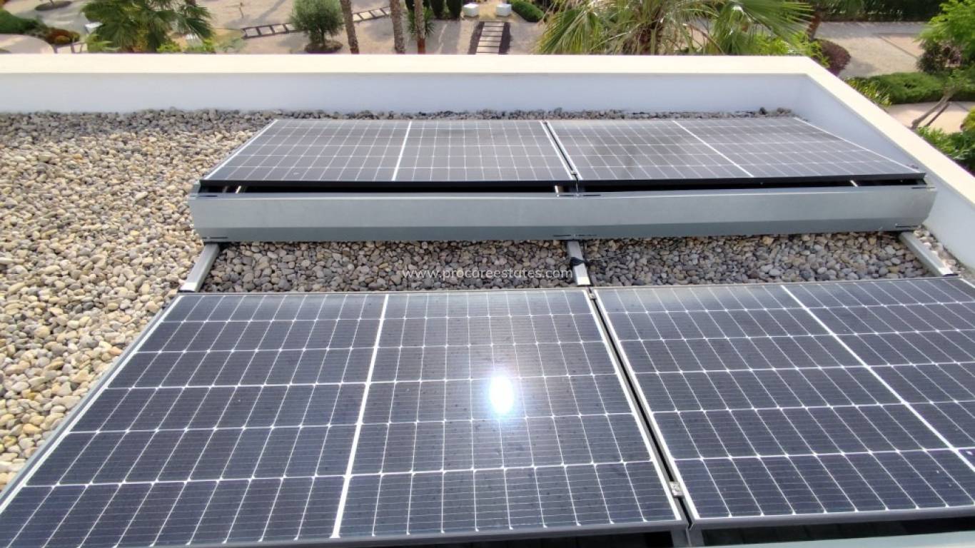 Penthouse. Modern Top Floor Apartment with Solarium & Jacuzzi in Vistabella Golf Location: Vistabella Golf, Costa Blanca South This west-facing, two-bedroom top floor apartment in the popular Vistabella Golf urbanization offers comfort, space, and a prime location. Just a short 5-minute walk to bars, restaurants, and a supermarket, this property is ideally positioned for everyday convenience. By car, you're only 5 minutes from Los Montesinos, 10 minutes from Quesada and Benijófar, and about 20 minutes to the stunning beaches of the Costa Blanca. Built in 2019, the apartment features a bright and spacious living area with large sliding doors that open onto a generous terrace overlooking the immaculately maintained communal gardens. The fully equipped open-plan kitchen includes a large breakfast bar, perfect for informal meals or entertaining guests. There are two double bedrooms, both with fitted wardrobes. The master bedroom has its own en suite bathroom, and there’s a second modern family shower room as well. From the terrace, external stairs lead to your private solarium, where you'll find a jacuzzi—included in the sale—and a shaded area with sun blinds, creating an ideal setting for outdoor dining and relaxing while enjoying panoramic views and sunsets. Additional features include: Ducted air conditioning Four solar panels Partially furnished Communal swimming pool Allocated community parking space This well-maintained property offers a balanced lifestyle of comfort, relaxation, and accessibility — ideal as a holiday retreat, rental investment, or permanent home under the Spanish sun. Contact Interested in viewing or learning more€ Get in touch with us — we're happy to help you find your place in the sun! ☀️