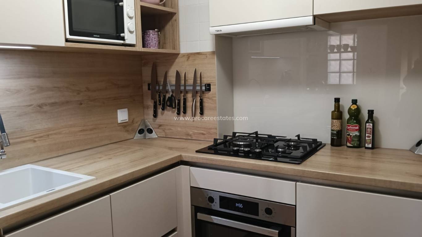 Charming detached villa in Los Montesinos – ready to move into We present this beautiful detached villa, situated in a quiet residential area of Los Montesinos, one of the most pleasant areas on the Costa Blanca. Ideal for both permanent residence and a seaside holiday, this property combines comfort, privacy, and a relaxing environment with all amenities within easy reach. The house has a built area of 80 m² on a private plot of 130 m², is perfectly used and well-maintained. Its Mediterranean design and excellent condition mean you can move in immediately without any renovation work. The house features three bright bedrooms with built-in wardrobes and two full bathrooms, fitted with high-quality materials. The separate kitchen (recently renovated) is fully equipped and includes appliances, ideal for culinary enthusiasts. The living/dining room is spacious and inviting, with direct access to the terrace and balcony, where you can enjoy the sunny climate typical of this region. Upstairs, a private solarium offers the perfect spot for sunbathing, reading, or simply relaxing with unobstructed panoramic views of the countryside. Outside you will find a barbecue area, ideal for gatherings with family or friends, and private parking is available on site. The villa is part of a beautiful residential complex with a communal swimming pool, where you can enjoy a quiet and family-friendly atmosphere. Extras include: Fully ducted air conditioning with 2 machines Furnished and equipped Jacuzzi Laundry room Secure door Mosquito nets Barbecue Terrace and balcony Solarium Private parking The location is unparalleled: Only 15 minutes from the beaches of Guardamar and Torrevieja 40 minutes from Alicante airport 5 minutes from shops, restaurants and recreational facilities 10 minutes from prestigious golf courses such as La Finca and Vistabella In short, this villa offers the perfect balance between comfort, privacy and proximity to everything you need to enjoy the Mediterranean lifestyle.