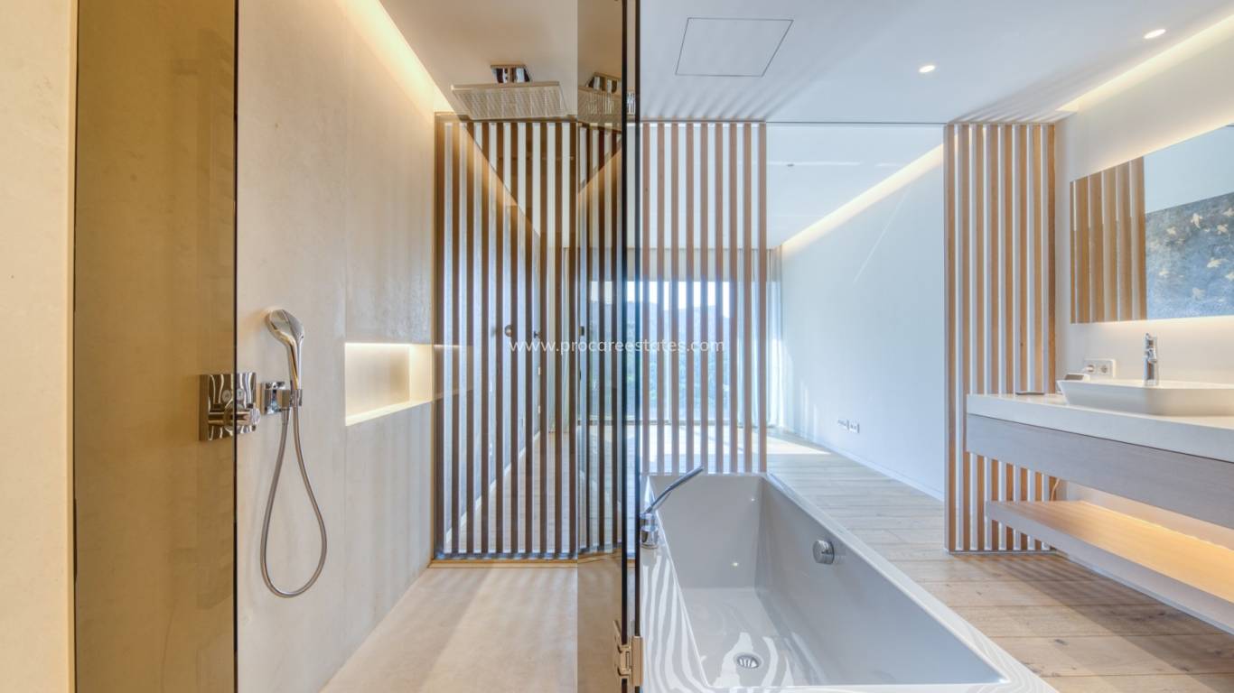 What is there better than to live in a modern, spacious villa, which offers splendid sea views and has its own pool? Find out more about this dream property in the renowned GRAND FOLIES complex south-west on the island. The modern villa offers approx. 280 m² of living space (approx. 493 m² constructed area) on the first floor with a very spacious living / dining area with open kitchen, guest WC and patio (5m²-). From this living level there is access to the outside area with covered terrace (41m²), private swimming pool (20m²), lounge area (15m²), further open terrace and sea and mountain views. On the second floor there are three bedrooms, each with its own en-suite bathroom and dressing area. All three bedroom suites offer fantastic views of the mountains and the sea. A special feature of this house is another large open space on the second floor with adjoining utility room and guest WC, which could be converted into a 4th bedroom with en suite bathroom. In the basement there is a technical room, further rooms for free use and direct access to the underground garage, where there is a private parking space. There is another uncovered parking space in front of the house entrance. The communal area offers beautifully landscaped gardens, a large pool area with sea views and fitness room, as well as a clubhouse with concierge service, heated indoor pool, whirlpool, dry sauna, steam sauna, further fitness room, offices for private use and a bar area with a beautiful outdoor terrace. The modern luxury residence New Folies is located in the popular Cala Llamp bay in Port d'Andratx in the southwest of Mallorca. The bay is known for the Gran Folies Beach Club with direct sea access, restaurant, bar and swimming pool. The harbor of Port d'Andratx is only a few minutes away by car, but is also easily accessible on foot. Here you will find a variety of restaurants, bars and boutiques. In the neighboring village of Camp de Mar there is a fantastic sandy beach and the famous Golf de Andratx golf course. The island's capital, Palma de Mallorca, is around 25 minutes away by car. Organize your viewing with us now and don't wait until somebody else buys this stunning villa! Online viewings can be also arranged.
