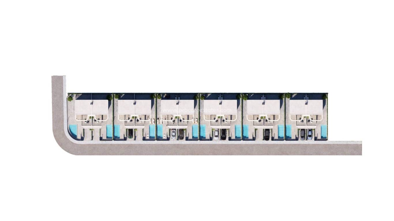 Modern Semi Detached Villas in Daya Nueva with Contemporary Design and Excellent Connectivity Peaceful Living in Daya Nueva These new semi detached villas are located in the charming town of Daya Nueva in the south of Alicante. Known for its peaceful rural atmosphere, Daya Nueva offers a comfortable lifestyle surrounded by orchards and open landscapes, while being just a short drive from the vibrant coastal areas of the Costa Blanca. The town provides essential services, restaurants and local shops, and sits only 10 km from the beaches of La Marina del Pinet and Guardamar del Segura. The Alicante International Airport is approximately 25 km away, making it highly accessible for international homeowners. Golf lovers will appreciate being within 12 km of La Marquesa Golf and 15 km from Vistabella Golf. Elegant Architecture and Quality Construction This exclusive development has been designed with great attention to detail, incorporating a bright, fresh and modern architectural style. The curved lines of the facade create a unique contemporary look, while high quality finishes ensure lasting comfort. Functional Layout Across Two Floors Each villa is distributed over two levels in the new residential area of Daya Nueva, within walking distance to the town center. The ground floor includes a living and dining area with an open plan kitchen, direct access to the garden, a bedroom with ensuite bathroom and walk in wardrobe, a guest toilet and a private parking space on the plot. A private pool can be added at an additional cost. The upper floor features two more bedrooms, a full bathroom and a 19 m2 open terrace with pleasant open views. Comfort and Modern Features Homes come equipped with fitted bathrooms including furniture, mirror and shower screens. Additional features include ducted air conditioning pre installation, furnished kitchens, electric shutters in bedrooms, indoor and outdoor LED lighting and three photovoltaic solar panels. Ideal Location for Coastal and Rural Living The villas are set in a quiet new residential area with easy access to the A 70 motorway. The beaches, golf courses, marinas and nearby towns are all within a short distance, making this an ideal location for both holidays and year round living. Contact us today to schedule a visit and secure your new home in Daya Nueva.