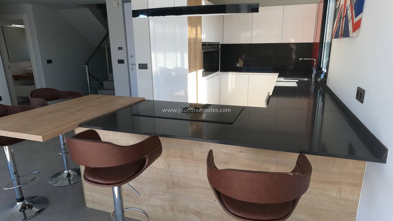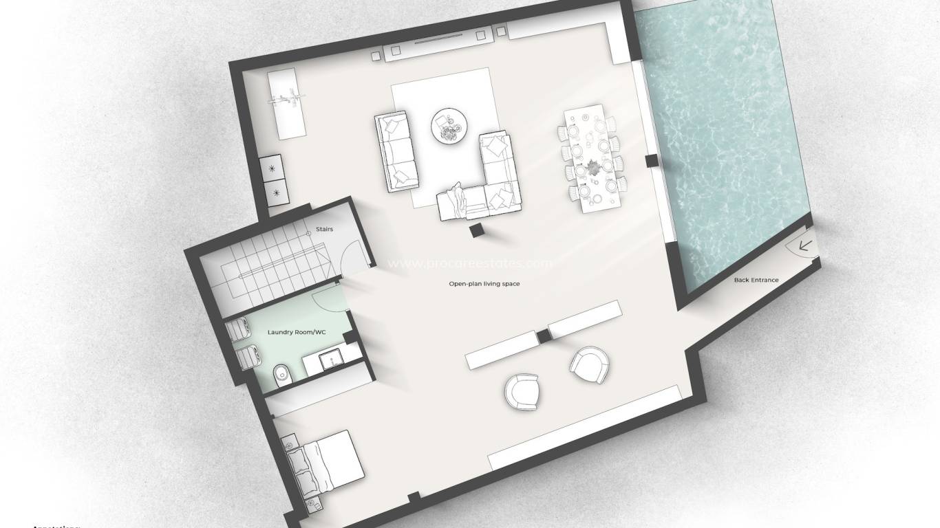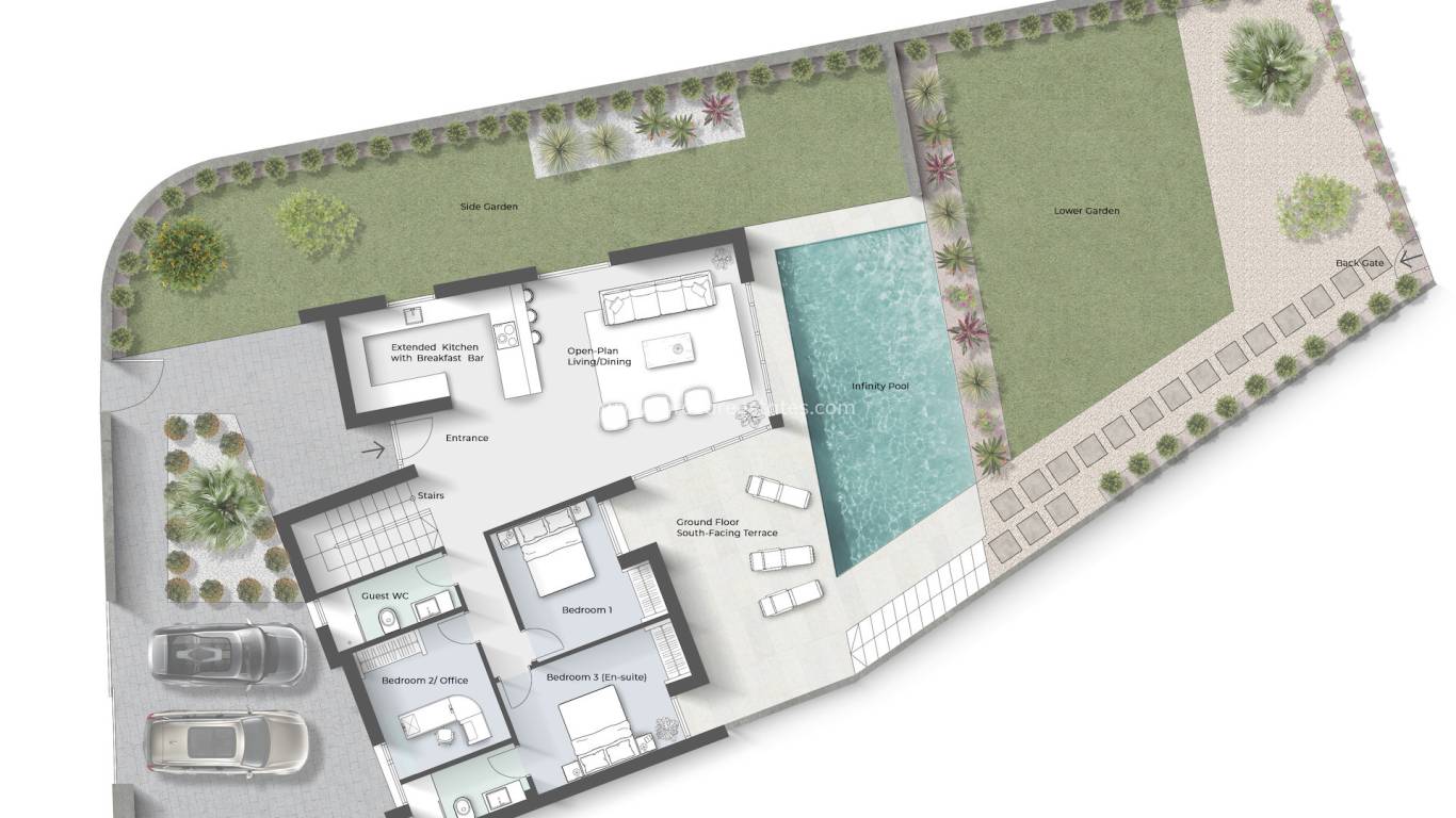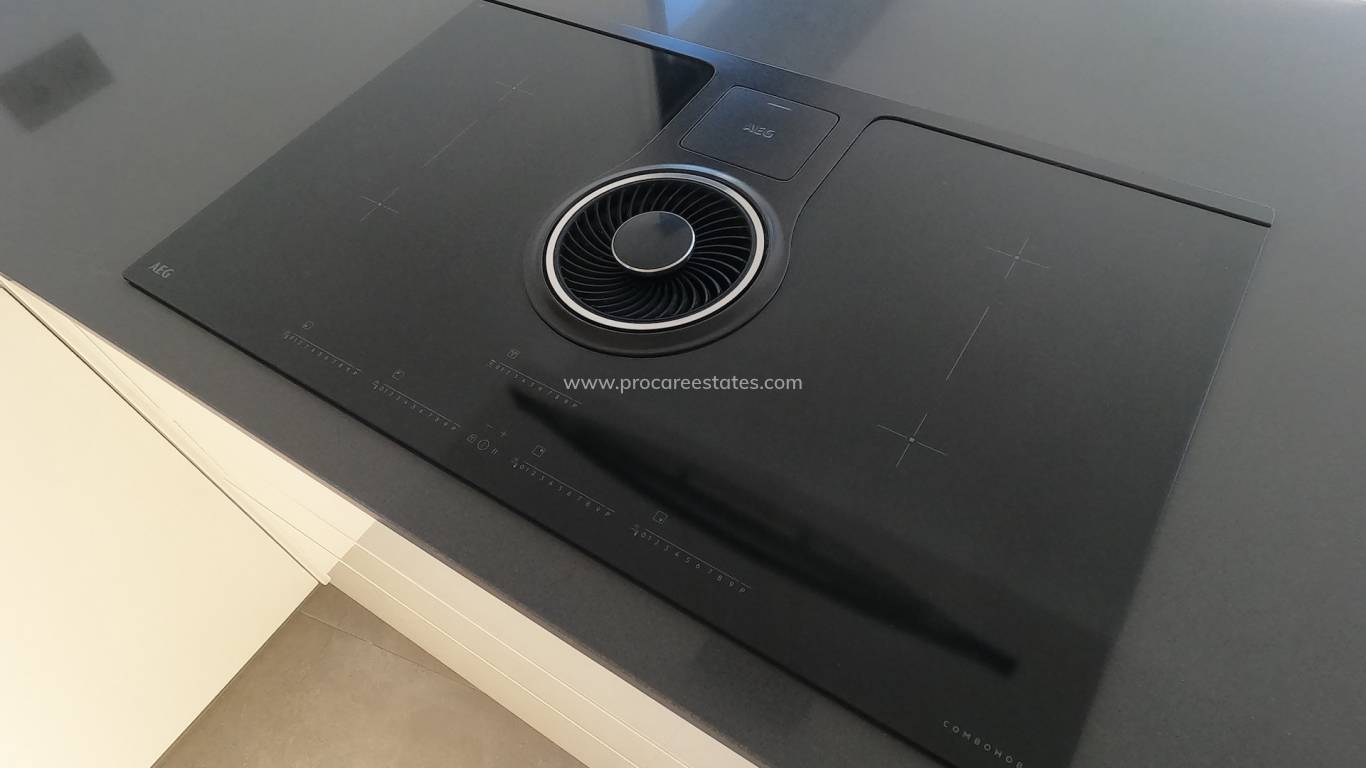 Stunning South-Facing Villa in prominent position to La Finca Golf with Exceptional Privacy, Infinity Pool & a 120m² Designer Underbuild. Positioned on one of the most privileged front line plots in all of La Finca Golf, this modern 4-bedroom villa combines architectural elegance, panoramic golf and mountain views, complete privacy, and a unique 120m² daylight-filled under build with spectacular pool windows — a feature rarely found anywhere in Spain. Just 30 minutes from Alicante Airport, this is the ideal base for year-round living, long golf weekends, or a premium holiday home. Property Overview  4 bedrooms  3 bathrooms + 1 guest WC  300 m² built area (including 120 m² under build)  440 m² private plot  South-facing  Front line golf position with uninterrupted views  Infinity private pool with pool-window feature  Large terraces + 65 m² solarium  Parking area and dual access (front & back entrances)  No community fees A Home Designed Around Light, Views and Privacy The villa enjoys one of the most private positions on La Finca — a rarity on the resort. No neighbouring properties overlook the pool, terraces or solarium, allowing for complete sunbathing privacy, even au naturel if desired. The elevated plot and open vistas provide a serene, exclusive atmosphere from sunrise to sunset. Main Living Area The ground floor is a bright, open-plan space framed by floor-to-ceiling glass, bringing views and sunlight into every corner.  Spacious living room with panoramic views  High ceilings for an airy architectural feel  Direct access to the pool and terraces  Seamless indoor–outdoor flow The Siemens-equipped kitchen includes:  Siemens refrigerator  Siemens dishwasher  Dual Siemens ovens  AEG induction hob with integrated extractor  Abundant worktop and storage space  Breakfast bar island Bedrooms and Bathrooms The villa offers four well-appointed bedrooms, each with large fitted wardrobes and beautiful natural light. Main level  Three bedrooms, one with en-suite with bathtub  Direct terrace and pool access from two bedrooms  Additional family shower room Upper level  Master suite with private bathroom  Sliding doors to a spectacular wrap-around solarium  Far-reaching views over the golf course and surrounding mountains 120 m² Underbuild — A Rare, Versatile Living Space This remarkable level is unlike anything else on La Finca:  Flooded with natural light  Show-stopping glass windows looking directly into the pool  Guest WC + full laundry area (Siemens washing machine & Siemens dryer) This space can be transformed into:  Cinema room  Gym  Games & bar lounge  Additional living quarters  Office + studio  Wellness spa area The cool summer temperatures make it ideal for year-round use. Outdoor Living  Infinity pool with underwater windows  Large sun terraces with unbeatable views  Beautiful low-maintenance landscaping  South orientation for maximum sun exposure  Elevated plot ensuring privacy  65 m² rooftop solarium for sunsets, yoga, dining, or a jacuzzi Additional Features  Mitsubishi Electric air conditioning (efficient heating & cooling)  Motion-detection alarm system  High-speed fiber optic internet  Electric shutters  Front and rear access ideal for guests or deliveries  Short walk to restaurants, bars, shops and services  Access to La Finca’s spa, golf academy, padel and tennis club, and fitness facilities Lifestyle and Location La Finca Golf is one of Spain’s most highly regarded golf resorts, ranked among the Top 100 Golf Resorts in Europe. The villa is within minutes of:  Renowned golf course with academy  Tennis & padel club  Luxury hotel & spa  Gyms, hiking routes & mountain biking trails  Excellent restaurants and entertainment  Award-winning beaches (20 minutes) A rare combination of luxury, architecture, natural light, privacy, and an unbeatable front line setting. Viewing Highly Recommended Homes with this level of privacy, orientation and design are rarely available. Viewings are by appointment only.