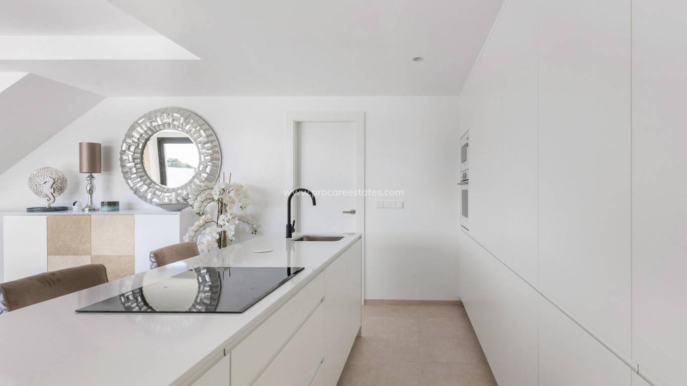 New Build Villas with Private Pool Near La Serena Golf in Los Alcazares Exclusive Boutique Development Near Golf and Beach Discover this exclusive residential development of only eight independent new build villas ideally located between La Serena Golf and the charming coastal town of Los Alcazares. Situated just 1500 meters from the Mar Menor beaches, these homes offer the perfect combination of golf, sea and Mediterranean lifestyle. The location allows residents to enjoy walking distance access to both the golf course and the town center, where a wide range of restaurants, shops, cafes and essential services can be found. Los Alcazares is known for its relaxed atmosphere, long promenade and shallow warm waters, making it a popular destination for both holidaymakers and permanent residents. Modern Villas with Flexible Layouts These contemporary villas are available in two or three bedroom configurations, with options for single level or two level designs. Built on private plots starting from 200 m2, each home is designed to maximize space, comfort and natural light. All villas feature a private swimming pool and on plot parking, creating a private and functional outdoor environment ideal for enjoying the sunny climate all year round. Single level villas include a private rooftop solarium, perfect for sunbathing or relaxing with open views. Two level villas offer spacious terraces on the upper floor, providing additional outdoor living areas. Open Plan Living and Outdoor Connection The interior layout focuses on open plan living, with bright living and dining areas seamlessly connected to modern kitchens. Large windows allow natural light to fill the spaces while offering direct access to terraces and pool areas. This design enhances the indoor outdoor lifestyle that defines living on the Costa Calida, making these villas ideal for both everyday living and entertaining guests. High Quality Finishes and Modern Features The villas are built to high standards using quality materials and trusted brands. Features include a reinforced security entrance door by DIERRE, fully fitted wardrobes and modern kitchens equipped with BOSCH appliances. Additional specifications include aerothermal system for hot water, motorized shutters and an automated vehicle access gate. Every detail has been carefully considered to provide comfort, efficiency and convenience. Prime Location on the Costa Calida Los Alcazares offers an excellent location with easy access to beaches, golf courses and transport connections. The Mar Menor beaches are just 1.5 km away, while La Serena Golf is within walking distance. Other key distances include Murcia Corvera Airport 35 km, Cartagena 25 km, Murcia city 50 km and Alicante Airport 90 km. Ideal Investment or Holiday Home Opportunity These new build villas offer a rare opportunity to own a modern property in a prime location close to both the sea and golf. Contact us today for more information or to arrange a viewing and secure your new villa in Los Alcazares.