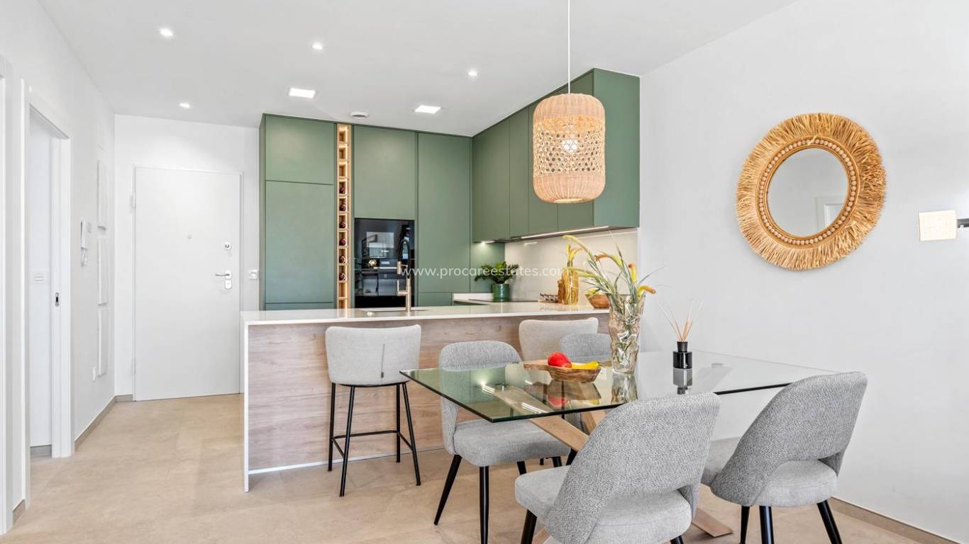 New Build Apartments and Villas Frontline Golf in Los Alcazares Costa Calida Exclusive Residential Development Near the Beach and Golf Discover this exceptional new build residential complex in Los Alcazares, one of the most desirable coastal towns on the Costa Calida. Ideally located just 1.2 km from the beaches of the Mar Menor and frontline to La Serena Golf, this development offers a perfect blend of modern living, coastal lifestyle and peaceful golf surroundings. Los Alcazares is a charming seaside town known for its relaxed atmosphere, long promenade, local restaurants and year round services, making it ideal for both permanent living and holiday homes. Modern Apartments and Exclusive Villas The development consists of 37 contemporary apartments distributed across three low rise buildings, designed around a beautiful communal pool and landscaped gardens. Buyers can choose between 2, 3 or 4 bedroom apartments, including ground floor units with terraces, middle floor apartments and penthouses with private solariums offering open views to the golf course and the sea. In addition, the project includes 7 exclusive single level villas with 3 bedrooms, each featuring a private pool and a prime frontline golf position. High Quality Features and Comfort All properties are built with modern finishes and designed for comfort and functionality. Each home includes fully equipped bathrooms with furniture and shower screens, pre installation for ducted air conditioning and motorized shutters in bedrooms. Apartments also benefit from a private parking space and storage room in the underground garage, accessible by lift, ensuring convenience and security. Prime Location in Los Alcazares This residential complex enjoys a strategic location with easy access to all amenities, golf courses and major road connections. The town center is within walking distance, offering supermarkets, shops, restaurants and leisure facilities. The Mar Menor is known for its calm and warm waters, perfect for swimming, sailing and water sports, while La Serena Golf is highly regarded for its unique design with water features throughout the course. Distances to Key Points of Interest Mar Menor beaches 1.2 km La Serena Golf adjacent Roda Golf 4 km Cartagena 20 km Murcia International Airport 35 km Alicante Airport 95 km Your Ideal Home on the Costa Calida Whether you are looking for a permanent residence, a holiday retreat or a smart investment, this development offers an unbeatable combination of location, quality and lifestyle. Contact us today to receive more information or arrange a visit and secure your new home in Los Alcazares.